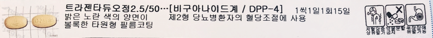 필자가 처방받은 약이 들어있는 약봉투에 적혀있는 트라젠타듀오정 2.5/500 설명