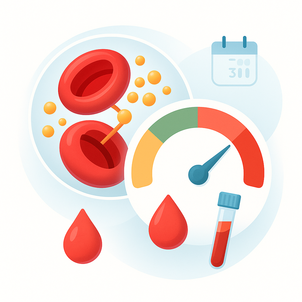 1. 당화혈색소 란?1.1 당화혈색소 개념당화혈색소(HbA1c)는 혈액 속 적혈구에 들어 있는 혈색소(헤모글로빈)가 포도당과 결합해 만들어지는 형태를 뜻합니다. 적혈구는 대략 4개월가량 생존하므로, 당화혈색소 수치는 지난 2~4개월(평균 약 3개월) 동안의 평균적인 혈당을 반영합니다. 그래서 특정 시점의 혈당이 “쪽지시험”이라면, 당화혈색소는 “지난 학기의 성적표”에 가깝습니다. 식사, 스트레스, 수면, 활동량 등에 따라 순간 혈당은 쉽게 흔들리지만, 당화혈색소는 그 변동을 시간에 걸쳐 평균 내 주기 때문에 장기간 혈당 관리가 실제로 얼마나 이루어졌는지를 보다 객관적으로 보여 줍니다. 이 값이 높다는 것은 최근 몇 달 동안 평균 혈당이 높게 유지됐음을 의미하며, 당뇨병의 위험을 가늠하고 관리 방향을 잡는..
